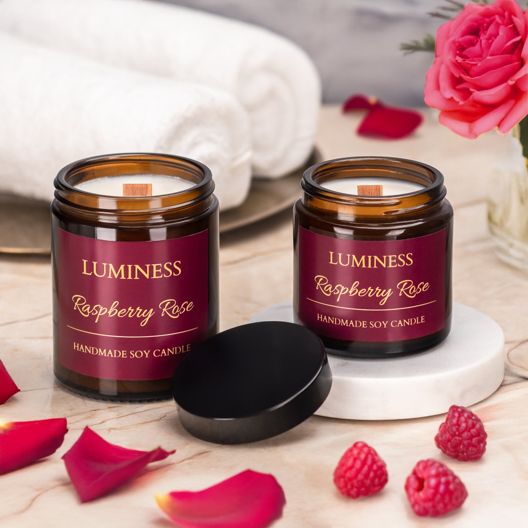 Wszystkie nasze świece sojowe wytwarzane są ręcznie z naturalnego wosku sojowego, dlatego mogą wystąpić drobne charakterystyczne cechy takie jak niewielkie nierówności powierzchni, naturalne dziurki, efekt matowienia (frosting) lub subtelne różnice w kolorze. Te naturalne właściwości są typowe dla świec sojowych i nie mają wpływu na czas palenia, jakość, ani intensywność kompozycji zapachowej.